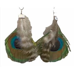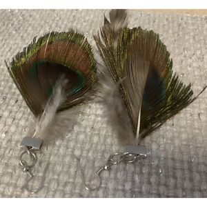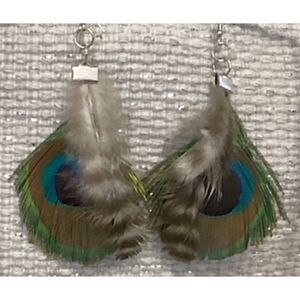 Peacock & Owl Feather Earrings NWOT Hand-Crafted