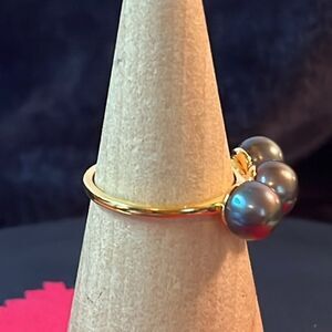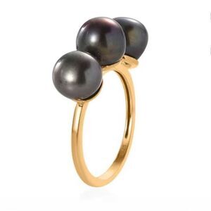 Are you ready to adorn your fingers with elegance and grace? Introducing our captivating peacock freshwater pearl three stone ring in 14k Yellow Gold plating over 925 sterling silver! Crafted with precision and finesse, this ring is more than just an accessory; it's a statement of sophistication and style.