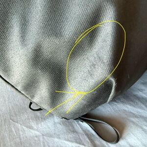 -some abrasion (circled in yellow) on an external pocket and on the back center piece (in between the straps)