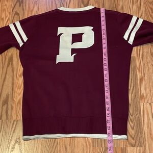 Peak Performance Cardigan, Varsity Letterman P, burgundy cream, Large