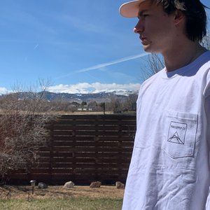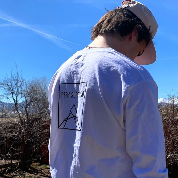 Peak Supply CO L/S Pocket Crew-neck T-shirt. NEW without tags. White, 100% cotton, long sleeved Pocket T-shirt with Peak Supply Co logo on front pocket and back of T-shirt in black ink. Hanes Tagless pre-shrunk cotton. Sizes available in Men's/Uni S, M & L.