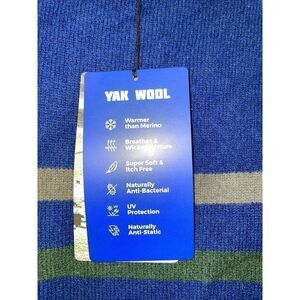 Peak To Plateau NWT Yak Wool Striped Crewneck Blue & Green Anti-Itch Sweater.