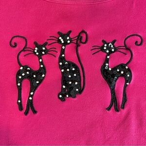 Peanut Butter & Jelly Womans plus 2X Pink 3/4 Sleeve BLACK CAT Tee Shirt Cotton