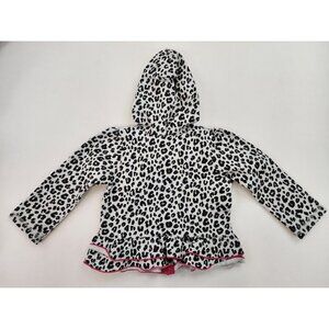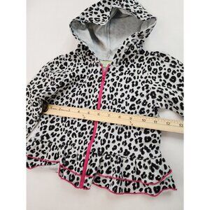 Peanut & Ollie 3T Hooded Ruffle Leopard Jacket Long Sleeved Full Zip Front White