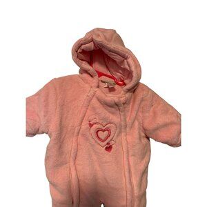 Peanut & Ollie Girls Infant baby Size 3 6 months Pink Hooded Bunting Coat Winter Heavy Heart front