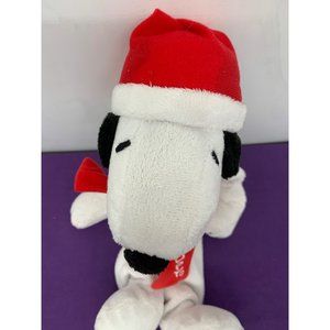 A 12-inch plush stuffed animal featuring the beloved character Snoopy from Peanuts, dressed in a festive holiday hat and scarf.
