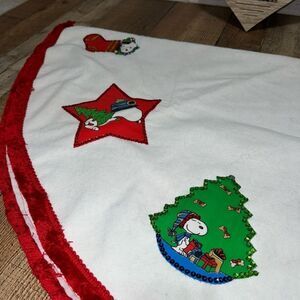 Peanuts Beaded Handmade Patchwork Christmas Tree Skirt Snoopy Holidays Sequin