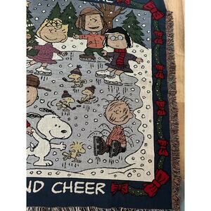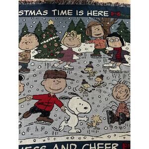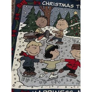 Peanuts Charlie Brown Ice skating Danbury Mint Christmas Tapestry throw blanket