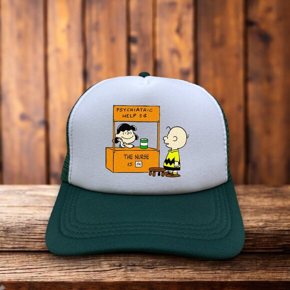 Peanuts Charlie Brown Mens Trucker Hat Green Snapback I Love Lucy Advice Comic