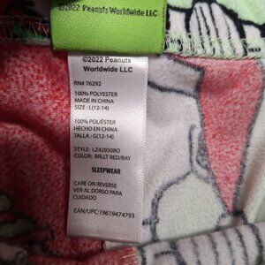 Peanuts Christmas Snoopy Red Green Pants Fluffy Soft Womens Large 12 10 Santa