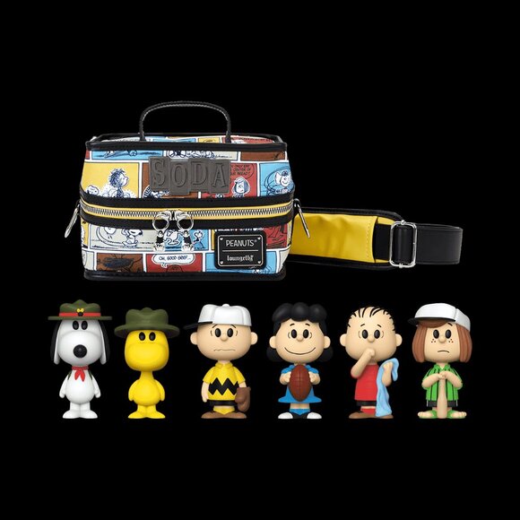New Vinyl Soda Can Peanuts 6 Pack and Cooler. Only 15,000 of This Funko Exclusive Set Were made. You'll Find a Soda Can Containing Figures of Charlie Brown, Linus Van Pelt, Lucy Van Pelt, Peppermint Patty, Snoopy and Woodstock. Cooler is Approximately 8" W x 5.25" H x 5.25" (Width is Measured Along the Bottom of the Cooler.) Vinyl Figures are Approximately 4 in (10. 2cm) Tall.