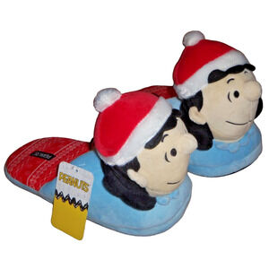 Get cozy in festive style with these Peanuts holiday slippers, featuring a playful 3D Lucy head wearing a Santa hat right on the front. Perfect for lounging at home, these slippers combine comfort, fun, and durability for the holiday season.
