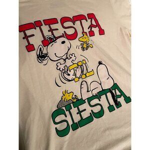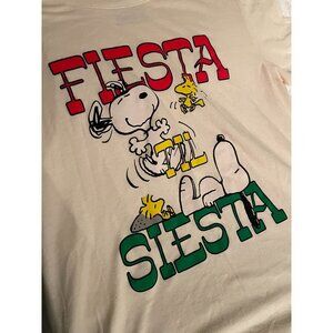 Peanuts Fiesta Siesta Snoopy T-Shirt XL Beige Cotton/Polyester Blend Fun Graphic