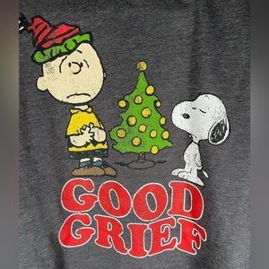 Peanuts Good Grief Christmas Snoopy Charlie Brown gray graphic sweatshirt sz L
