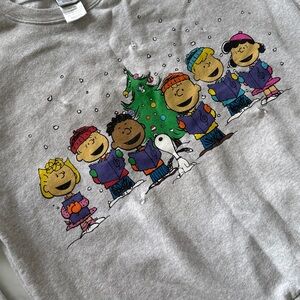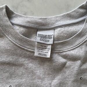 Soft gray heather sweatshirt with Peanuts design. Ideal for casual wear.