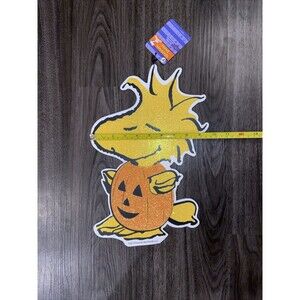 Peanuts Halloween 15" Decoration Window Die Cut 3pc Set Glitter Snoopy Woodstock BRAND: Peanuts Worldwide LLC MATERIAL: Pressboard Wooden COLOR / DESIGN: Glittery Multicolor Peanuts Set AGE: Vintage 2013 SIZE: 15" scale SET INCLUDES: Woodstock, and two different Snoopys