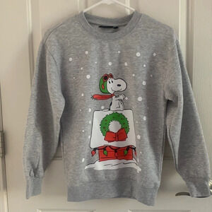 Peanuts Holiday Snowy Winter Sweatshirt pullover Gray XS