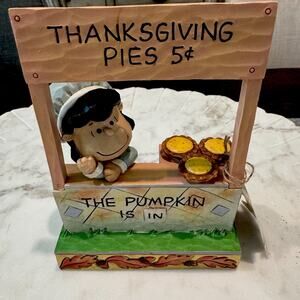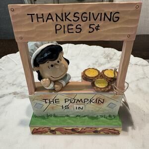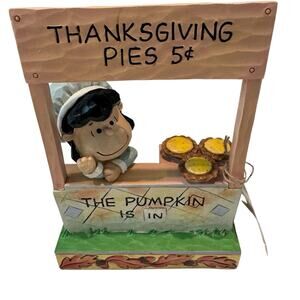 The product is a Peanuts Jim Shore figurine featuring Lucy from the beloved Peanuts collection. This Thanksgiving statue showcases the iconic character in a festive multicolor design, perfect for adding a touch of whimsy to any holiday decor. As a retired piece from Jim Shore, this figurine is a must-have for collectors of Peanuts memorabilia and fans of the classic comic strip.