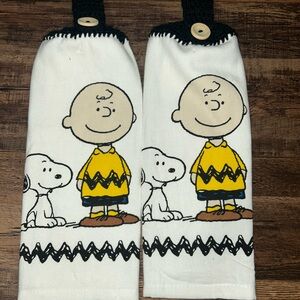 Charming Peanuts oven mitt and towel set. Features beloved characters in a playful design.