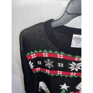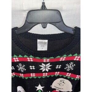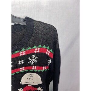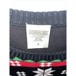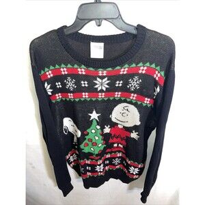 Peanuts Men’s Pullover Sweater Size Medium Black Christmas Holidays Tree Motif