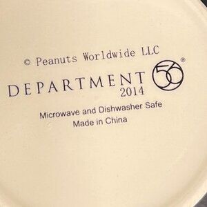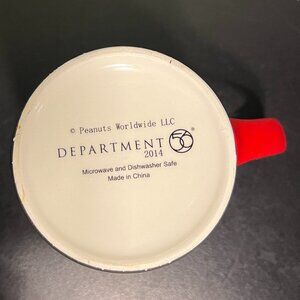 Musical Mutt ceramic mug features full body images of Snoopy, the beloved dog character of the Peanuts comic strip by Charles M. Schulz. Snoopy’s white body is overlaid with black sheet music notes of Beethoven’s 5th. Black mug exterior, white interior, and large comfortable bright red handle, Red vertical text serving as a border between the two images of Snoopy reads, MUSICAL MUTT. A bright red dog collar around Snoopy’s neck compliments the design.Microwave and dishwasher safe. Measures 4.5” tall with a 3.5” diameter; 5.25” across including handle. Holds 16 fluid oz. PEANUTS WORLDWIDE LLC; Made by Department 56; Circa 2014