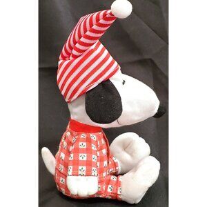 Peanuts SNOOPY plush jingle bell stuffed animal in Christmas Pajamas pjs Whitman