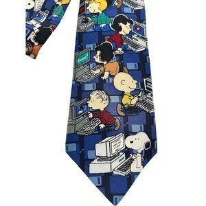 Peanuts Silk Necktie Charlie Brown Snoopy & Gang "Surfing The Net" Computers