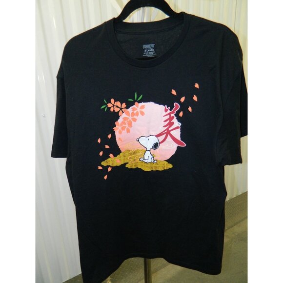 Peanuts Snoopy Black Graphic T-Shirt X-Large 100% Cotton Cherry Blossom Design