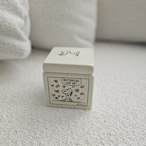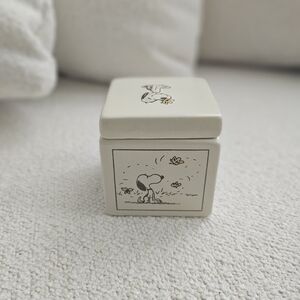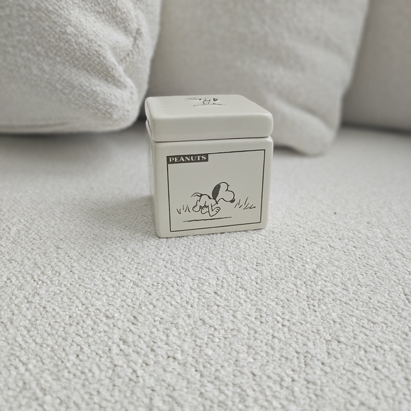 Charming Peanuts ceramic box featuring Snoopy. Perfect for small items. New.