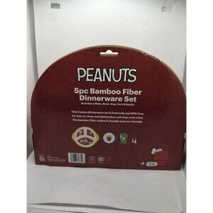Peanuts Snoopy Charlie Brown Dinnerware Set Bamboo Fiber 5pc Kids Eco Friendly