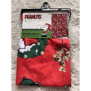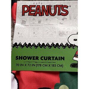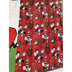 Peanuts Snoopy Charlie Brown Woodstock Lucy Sally Christmas Tree Lights Ice Skating Tree Wreath Presents Gifts Doghouse Candy Cane Fabric Shower Curtain 72X72” NEW