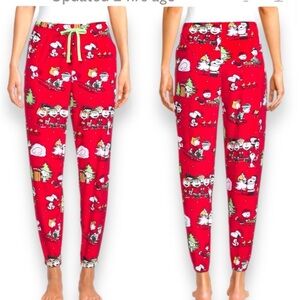 Peanuts Snoopy Christmas Licensed Plush Brilliant Red Jogger Pant M 8-10