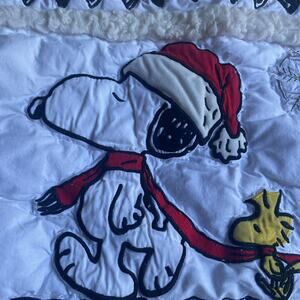 Peanuts Snoopy Christmas Quilted Pillow Cover Panel 26x21 Santa Hat Holiday Decor
