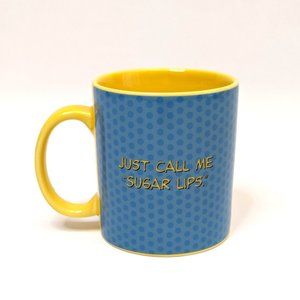 Blue and yellow mug features Snoopy / Joe Cool on one side and the phrase "Just call me sugar lips!" on the other.