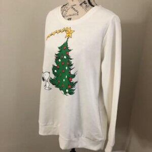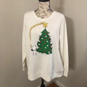 -Peanuts Snoopy Cozy Fleece Christmas Tree White Sweatshirt Pre-Owned.