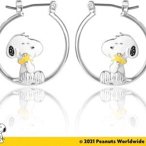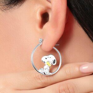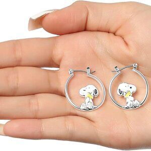 Peanuts Snoopy Earrings Silver Hoop Jewelry for Women Gift Accessory