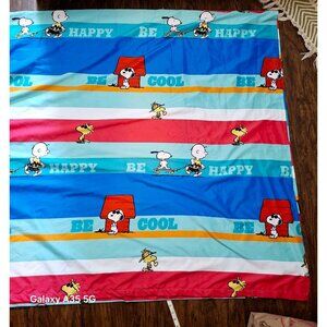 Peanuts Snoopy & Friends Twin Flat Sheet Blue Red White Striped Kids Bedding Cot