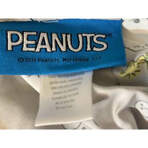Peanuts Snoopy full size sheet set featuring a winter snowman print with Snoopy and Woodstock throughout the design. Includes one fitted sheet, one flat sheet, and one matching pillowcase. Licensed Peanuts holiday print, perfect for Christmas, winter décor, or Peanuts collectors. Very Good Condition with no noted flaws. Clean and ready for use.