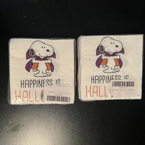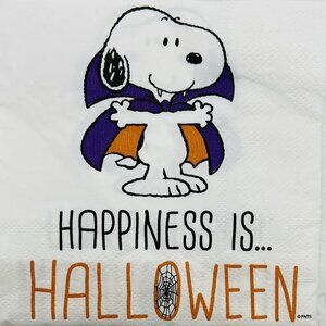 Celebrate spooky season with Snoopy! This adorable set includes 2 sealed packs of Halloween-themed paper napkins featuring Snoopy dressed as a vampire and the phrase “Happiness Is… Halloween” in festive orange lettering.
