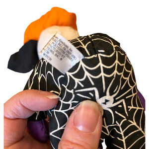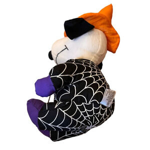 This vintage Snoopy plush stuffed animal is in very good used condition. No flaws noted. He's about 9.5 inches seated. He's made of parachute material popular in the 80's. He's got an orange witches hat and a spiderweb suit on. Super cute!