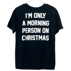 Great condition Peanuts Snoopy ‘I’m Only a Morning Person on Christmas’ graphic t-shirt size medium. Front of shirt has Snoopy, his doghouse, and holiday lights graphic and on the back the ‘I’m Only a Morning Person on Christmas’ text. 60% cotton 40% polyester.