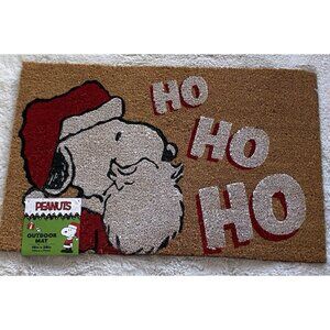 Peanuts Snoopy In Santa Suit Hat Christmas Coir Door Mat 18 X 28” HO HO HO NEW