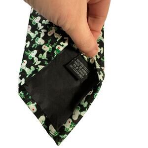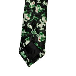 The tie also boasts the Peanuts logo as an accent and is perfect for anyone looking for a vintage piece with a Christmas theme. It is pre-owned and in excellent condition, making it a great addition to any tie collection. Don't miss out on the chance to own this rare and charming Snoopy necktie.