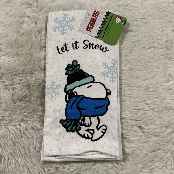 Peanuts Snoopy Let it Snow Winter Dish Towel Set Kitchen Towel NWT
