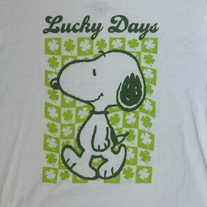 Peanuts Snoopy Lucky Days St Patrick’s Day T-Shirt - Size L - White/Green - NWOT