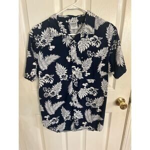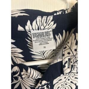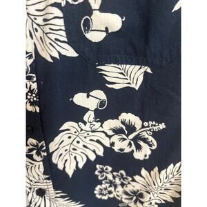 Peanuts Snoopy Navy Blue & White Hawaiian Button Down Shirt Size Medium