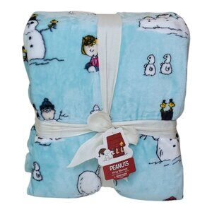 Soft and cozy king-size blanket featuring Peanuts characters in a whimsical winter snowman design. Ideal for adding warmth and charm to your home.