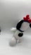 Charming Snoopy plush with vibrant red antlers. Features a blue plaid scarf. Comes with a small yellow Woodstock figure.