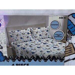 Peanuts Snoopy Puffy Coat FULL SIZE Sheet Set Christmas Puffer Jacket White Blue Sledding Snow Winter Holiday NEW