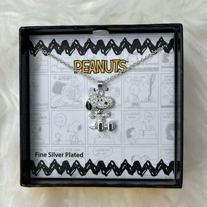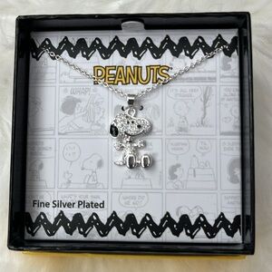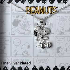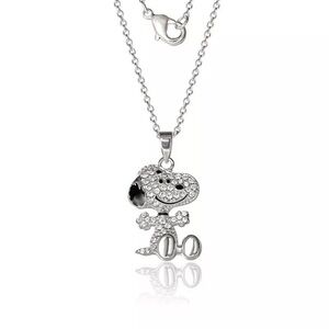 🆕 Peanuts Snoopy Rhinestone Crystals Pendant Necklace Fine Silver Plated